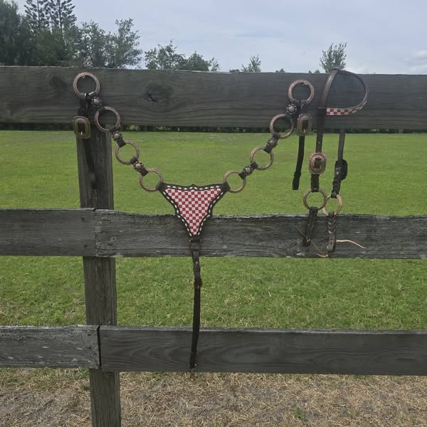 These sets are super fun and unique. Copper rings and conchos give this set a really fancy feel, while the checkered print keeps it fun. Super soft leather also gives it a nice feel.
